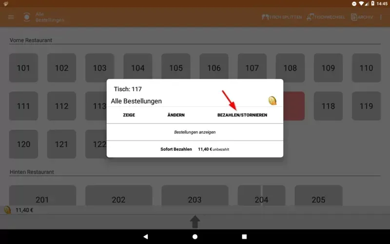 II. Wählen Sie “Bezahlen/Stornieren” aus.