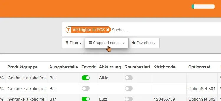III. Sie können Ihre Produkte nun nach Produktgruppen gruppieren, da die Produkte innerhalb der Gruppen meistens denselben Steuersatz haben. Tippen Sie hierfür auf “Gruppiert nach…”.