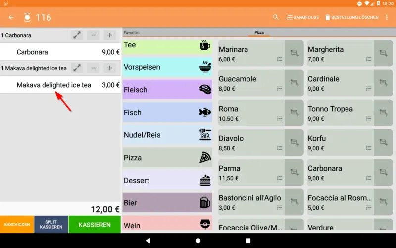 Beenden Sie den Vorgang, indem Sie entweder auf “Abschicken” (später bezahlen) oder auf “Kassieren” (sofort bezahlen) tippen.