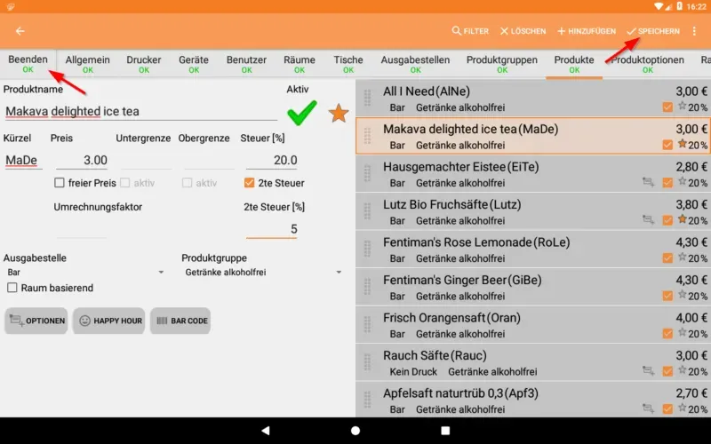 V. Tippen Sie auf “Speichern” und danach auf “Beenden”, um zur Bonieroberfläche zurückzukehren.